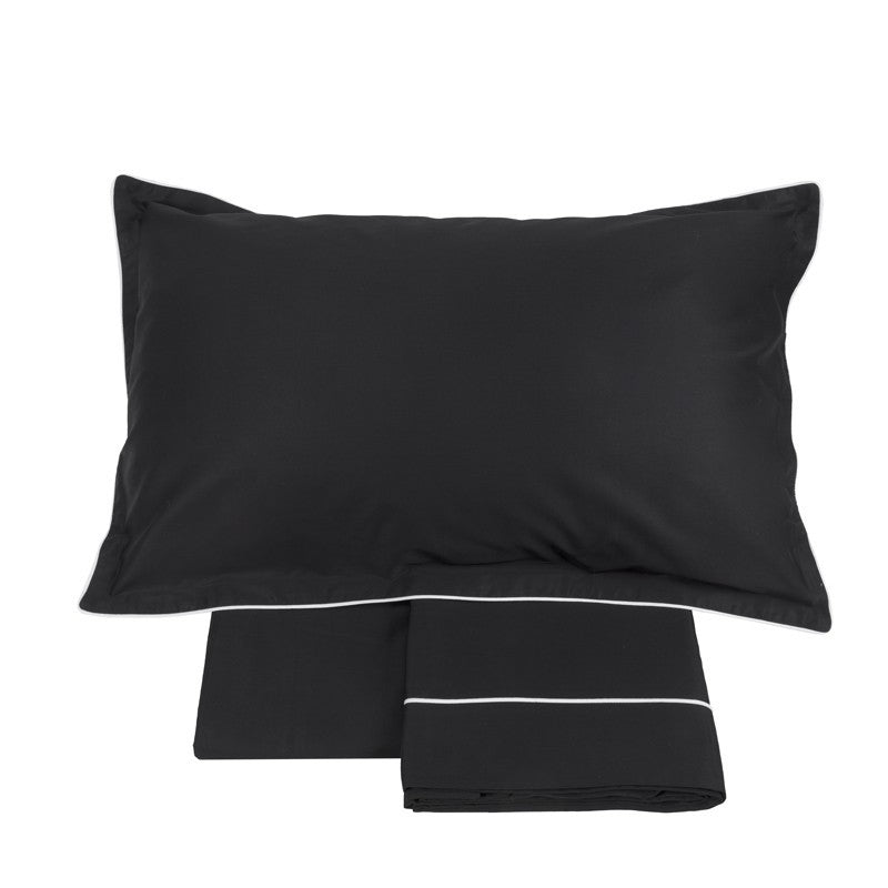 Il completo lenzuola Deal ha un look discreto e minimale, ma non rinuncia all'eleganza data dal raso di cotone 300 (300 fili per pollice) e dai ricercati abbinamenti di colore.