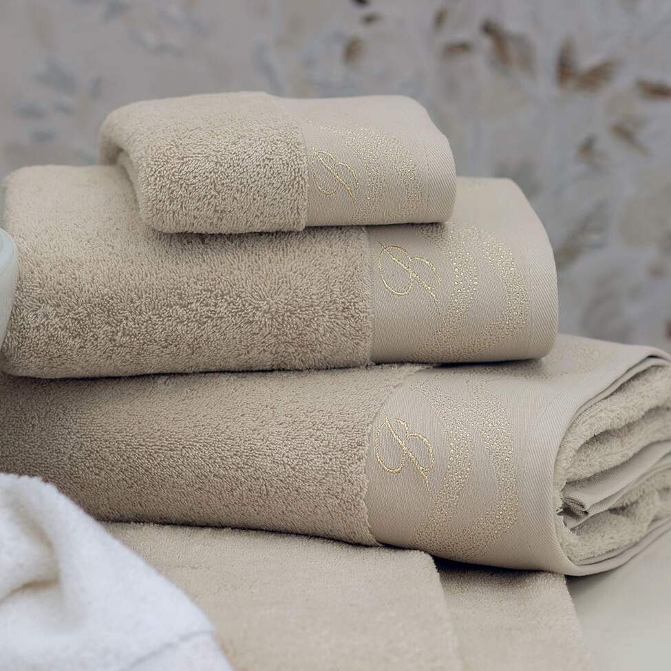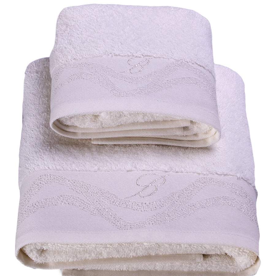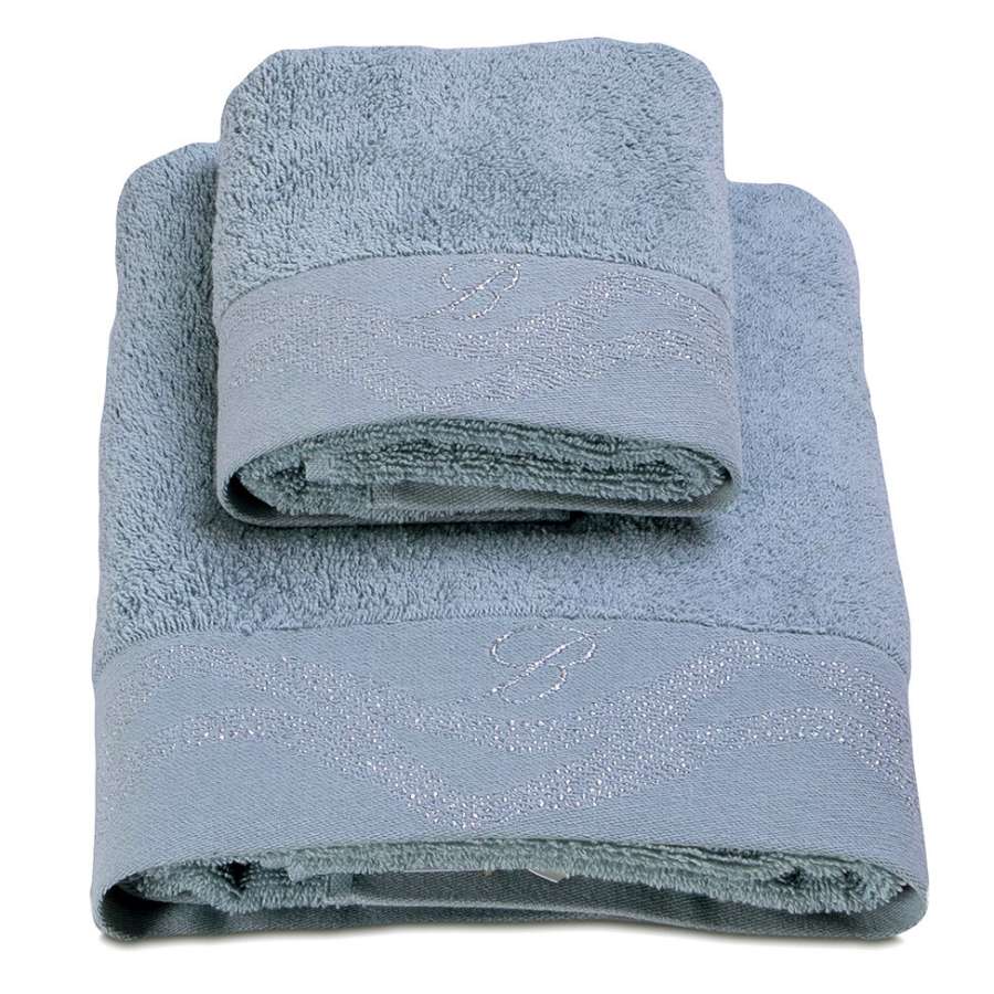 Coppia asciugamani Blumarine Crystelle, in spugna di puro cotone tinta unita.