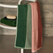 Ogni asciugamano presenta un elegante contrasto tra una tonalità profonda e una più chiara e polverosa. Disponibile in due varianti di colore: verde bosco (per un bagno ispirato ai toni della natura, rilassante e sofisticato) e rosa/sandalo (una combinazione calda e avvolgente, ideale per ambienti dai toni neutri o romantici).