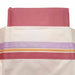 Il completo lenzuola Filari si presenta in due diverse colorazioni: verde-blu e rosa. Il lenzuolo con angoli è in tinta unita blu o rosa, in base alla variante scelta, mentre le federe e il lenzuolo di sopra sono caratterizzati da una balza con tessuto di due colori diversi applicato a mano.