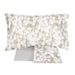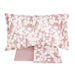 Il completo lenzuola Lunaria presenta una fantasia floreale dallo stile moderno, con fiori chiari su fondo grigio, rosa o tortora.
