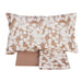 La fantasia è presente sulla faccia superiore delle federe e sul lenzuolo di sopra. Il resto del completo è in percalle di cotone tinta unita.