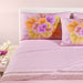 Il completo Madreperla presenta una moderna fantasia floreale con elementi geometrici. Le federe sono stampate in digitale e ritraggono grandi fiori dai colori vivaci. Il resto del completo presenta una trama a intrecci che dona movimento e profondità visiva.