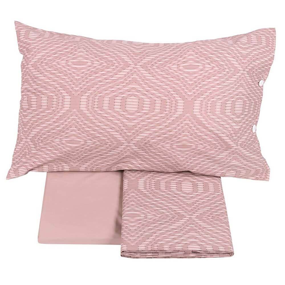 Completo lenzuola matrimoniale Fazzini Plops in percalle di puro cotone.