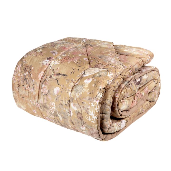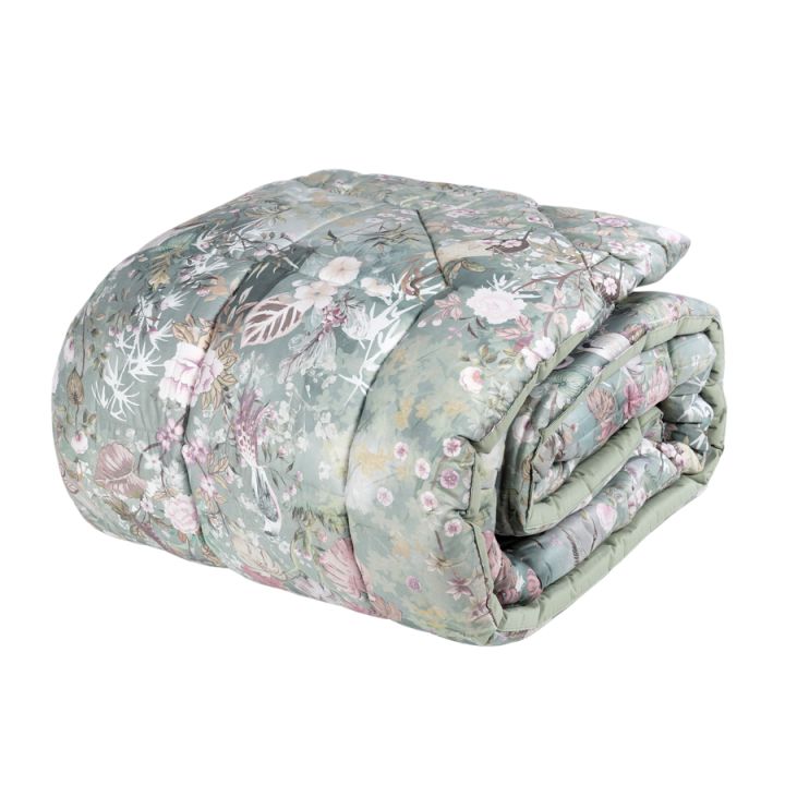 Trapunta invernale matrimoniale Fazzini Giardini d'Oriente, in raso di puro cotone.